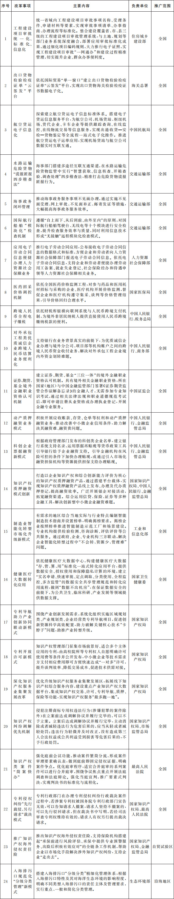 (一)在全國范圍內(nèi)復(fù)制推廣的改革事項。