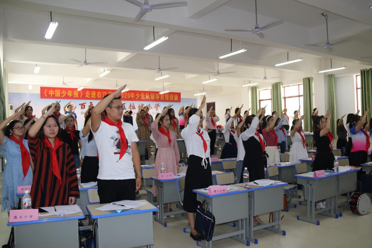 ????????由中國少年兒童新聞出版總社、共青團百色市右江區(qū)教育工作委員會主辦,廣西益眾文化傳媒有限公司、百色市右江區(qū)拉域小學(xué)等單位聯(lián)合承辦的“右江區(qū)2020年少先隊輔導(dǎo)員培訓(xùn)班”近日落下帷幕。本次培訓(xùn)為期3天,百色市城區(qū)及右江區(qū)各鄉(xiāng)鎮(zhèn)中小學(xué)的少先隊輔導(dǎo)員共60人參加培訓(xùn)。