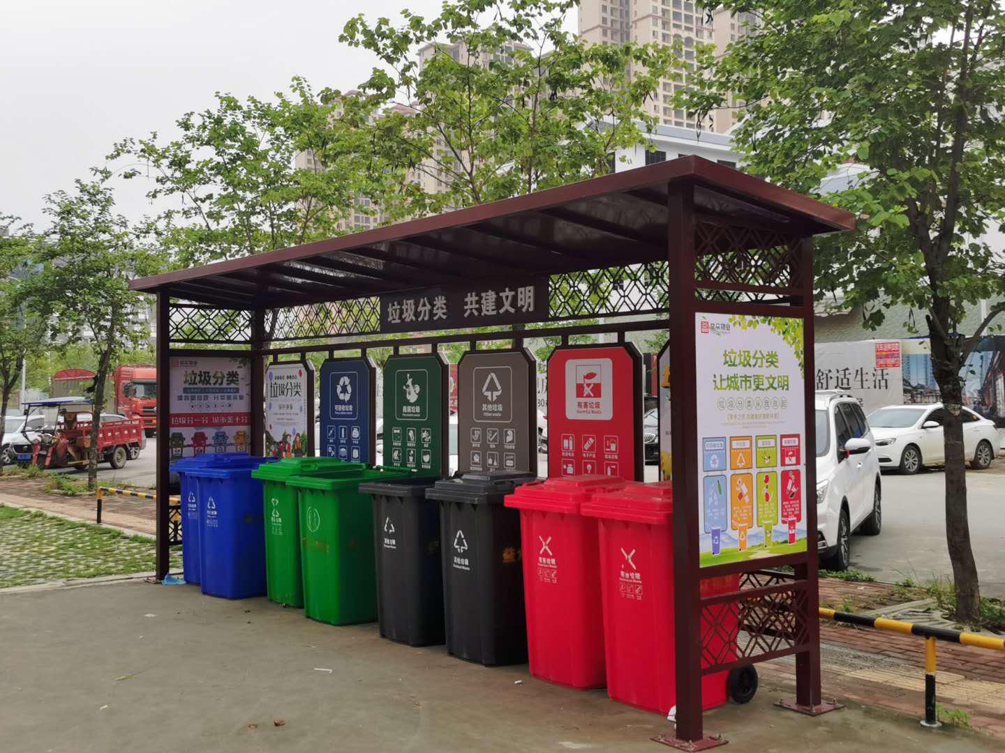 ???????益眾物業(yè)公司在小區(qū)外圍設(shè)置垃圾分類(lèi)試點(diǎn)2個(gè),投放分類(lèi)垃圾桶16個(gè)。垃圾回收站內(nèi)設(shè)置了可回收垃圾收集箱、有害垃圾收集箱、廚余垃圾收集箱等,居民前來(lái)投放垃圾可按垃圾類(lèi)型進(jìn)行細(xì)分。
