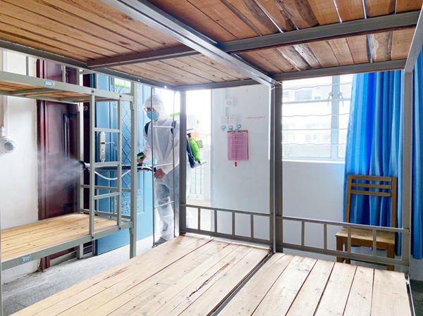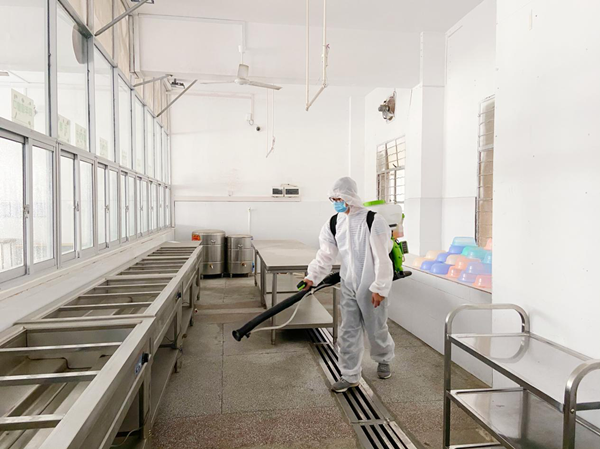 ??? 為筑牢疫情防控校園防線,打造真正安全、衛(wèi)生的校園環(huán)境,益眾托管濱江校區(qū)在百色協(xié)和醫(yī)院大力支持下,全面開展消毒防疫工作,對托管樓宿舍、廚房、食堂、樓道、衛(wèi)生間等區(qū)域進行全面消毒,為師生構筑安全屏障,以一個安全、衛(wèi)生的校區(qū)面貌靜候孩子們的歸來。(通訊員:黃桂珍)
