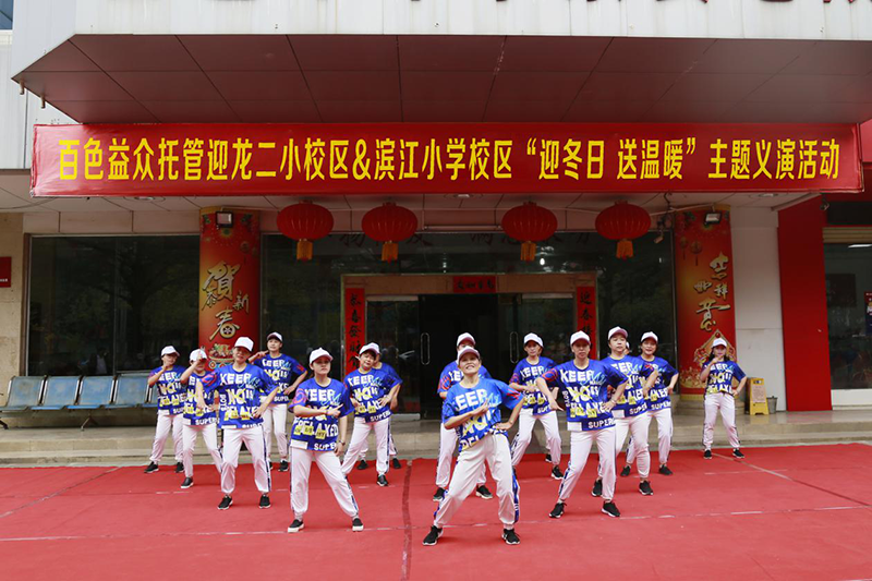 近日,為弘揚愛老、敬老、助老的中華民族傳統(tǒng)美德,百色益眾托管服務(wù)有限公司迎龍二小校區(qū)和濱江校區(qū)到百色市華宇樂安老院組織開展了主題為“迎冬日送溫暖”的義演活動。一曲曲悠揚婉轉(zhuǎn)的歌謠,一場場活力四射的舞姿,迎得了在場的老年人陣陣熱烈掌聲。最后一曲大合唱《感恩的心》把我們美好、吉祥的祝福和關(guān)愛送給老年人,他們的臉上露出了開心的笑容,活動現(xiàn)場洋溢著熱烈、祥和、幸福的氣氛。