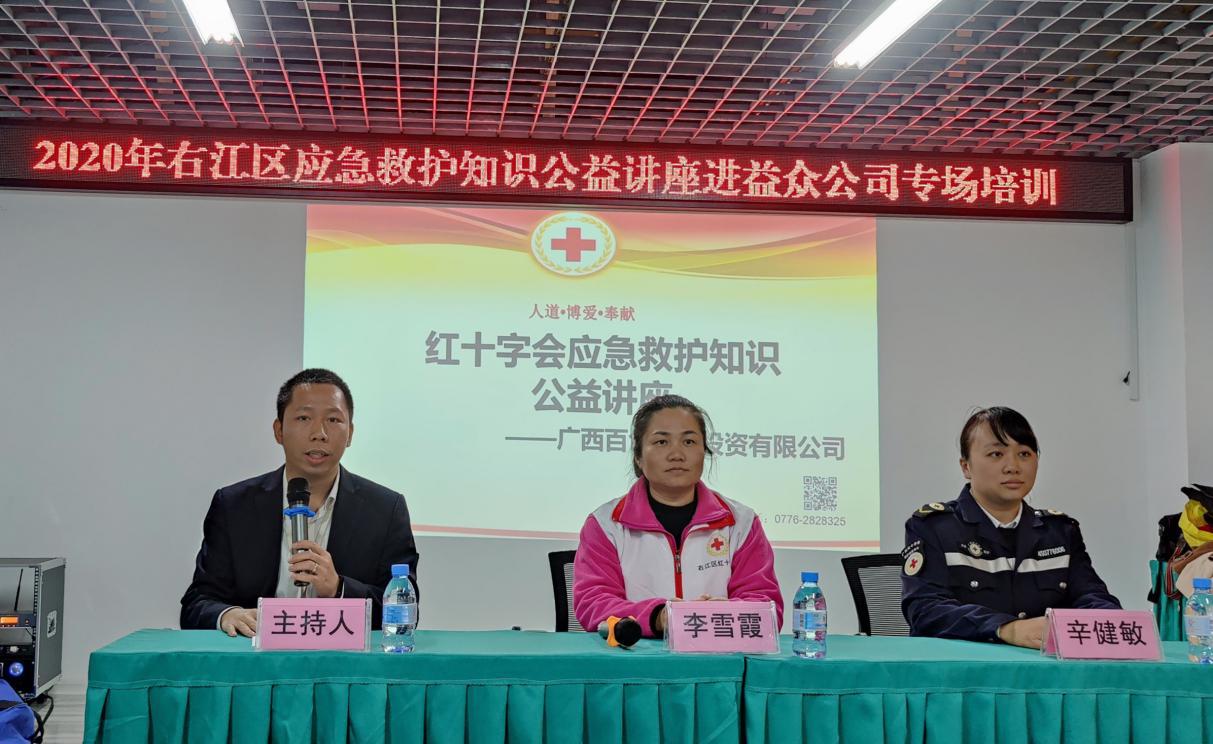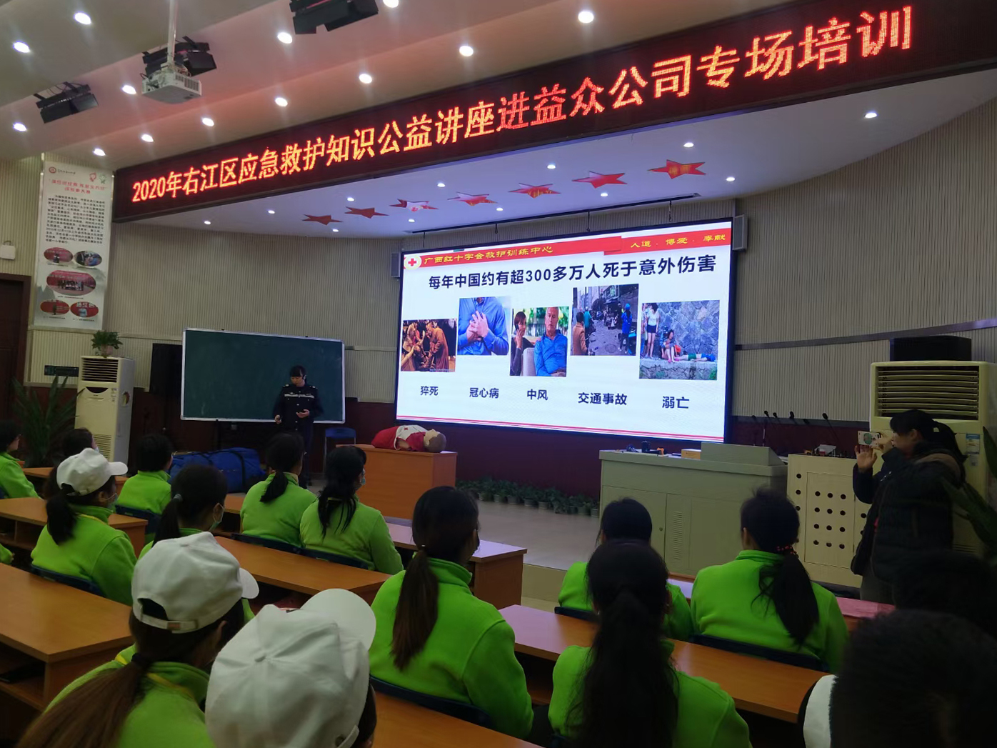 ????????為普及應(yīng)急救護知識,提高員工安全防范意識、自救互救能力和應(yīng)急救護技能,12月2日、6日,益眾公司邀請百色市右江區(qū)紅十字會到公司開展急救知識技能培訓,公司百余名管理人員、有關(guān)直屬班組400余人參加培訓。