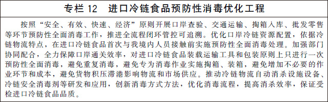 健全檢驗檢測檢疫體系。適應(yīng)不同農(nóng)產(chǎn)品檢驗檢測檢疫要求,完善覆蓋從種養(yǎng)殖、加工到銷售終端全鏈條以及冷鏈物流包裝、運載工具、作業(yè)環(huán)境等全要素的檢驗檢測檢疫體系。加強(qiáng)檢驗檢測檢疫設(shè)施建設(shè)和設(shè)備配置,完善應(yīng)急檢驗檢測檢疫預(yù)案,實行閉環(huán)式疫情防控管理,防范非洲豬瘟、新冠肺炎、禽流感等疫情擴(kuò)散風(fēng)險,提高重大公共衛(wèi)生事件等應(yīng)急處置能力。