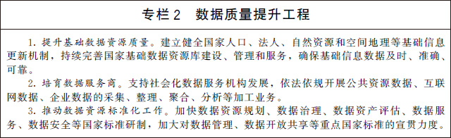 (一)強(qiáng)化高質(zhì)量數(shù)據(jù)要素供給。支持市場(chǎng)主體依法合規(guī)開展數(shù)據(jù)采集,聚焦數(shù)據(jù)的標(biāo)注、清洗、脫敏、脫密、聚合、分析等環(huán)節(jié),提升數(shù)據(jù)資源處理能力,培育壯大數(shù)據(jù)服務(wù)產(chǎn)業(yè)。推動(dòng)數(shù)據(jù)資源標(biāo)準(zhǔn)體系建設(shè),提升數(shù)據(jù)管理水平和數(shù)據(jù)質(zhì)量,探索面向業(yè)務(wù)應(yīng)用的共享、交換、協(xié)作和開放。加快推動(dòng)各領(lǐng)域通信協(xié)議兼容統(tǒng)一,打破技術(shù)和協(xié)議壁壘,努力實(shí)現(xiàn)互通互操作,形成完整貫通的數(shù)據(jù)鏈。推動(dòng)數(shù)據(jù)分類分級(jí)管理,強(qiáng)化數(shù)據(jù)安全風(fēng)險(xiǎn)評(píng)估、監(jiān)測(cè)預(yù)警和應(yīng)急處置。深化政務(wù)數(shù)據(jù)跨層級(jí)、跨地域、跨部門有序共享。建立健全國家公共數(shù)據(jù)資源體系,統(tǒng)籌公共數(shù)據(jù)資源開發(fā)利用,推動(dòng)基礎(chǔ)公共數(shù)據(jù)安全有序開放,構(gòu)建統(tǒng)一的國家公共數(shù)據(jù)開放平臺(tái)和開發(fā)利用端口,提升公共數(shù)據(jù)開放水平,釋放數(shù)據(jù)紅利。