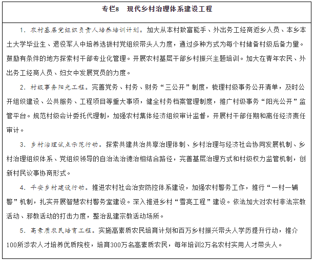 ——鄉(xiāng)村治理能力進(jìn)一步增強(qiáng)。黨組織領(lǐng)導(dǎo)的農(nóng)村基層組織建設(shè)明顯加強(qiáng),鄉(xiāng)村治理體系更加健全,鄉(xiāng)風(fēng)文明程度有較大提升,農(nóng)民精神文化生活不斷豐富,農(nóng)村發(fā)展安全保障更加有力。