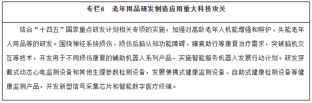 強化老年用品的科技支撐。加快推進互聯(lián)網(wǎng)、大數(shù)據(jù)、人工智能、第五代移動通信(5G)等信息技術(shù)和智能硬件在老年用品領(lǐng)域的深度應(yīng)用。支持智能交互、智能操作、多機協(xié)作等關(guān)鍵技術(shù)研發(fā),提升康復(fù)輔助器具、健康監(jiān)測產(chǎn)品、養(yǎng)老監(jiān)護裝置、家庭服務(wù)機器人、日用輔助用品等適老產(chǎn)品的智能水平、實用性和安全性,開展家庭、社區(qū)、機構(gòu)等多場景的試點試用。