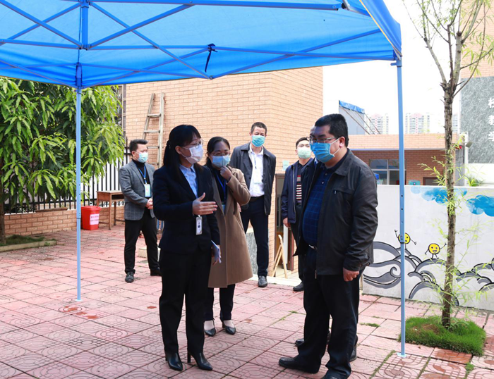 4月3日下午,右江區(qū)政協(xié)主席周文任到我公司下屬益眾托管公司第十小學(xué)校區(qū)檢查開學(xué)前疫情防控的準(zhǔn)備工作情況。右江區(qū)委常委、宣傳部部長(zhǎng)、副區(qū)長(zhǎng)王世凡,區(qū)政協(xié)辦公室主任王天躍、區(qū)教育局局長(zhǎng)蘇祖勝、第十小學(xué)及益眾公司相關(guān)負(fù)責(zé)人陪同檢查。